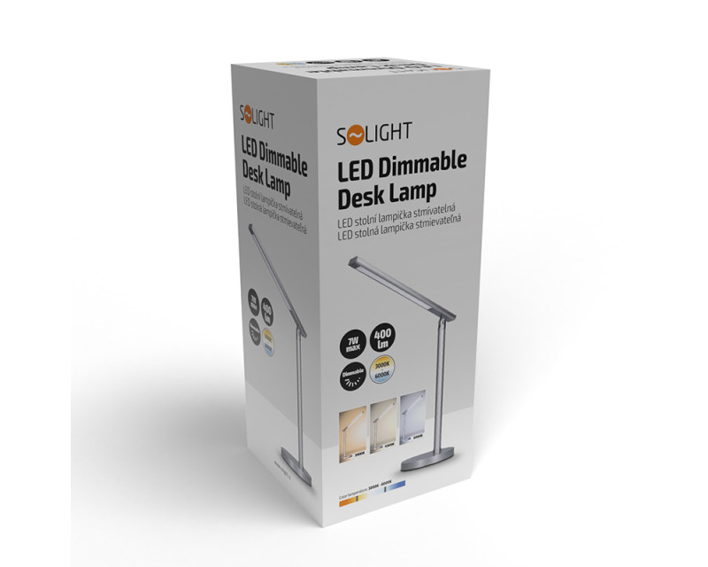Solight LED stolní lampička, 7W, stmívatelná, změna chromatičnosti, stříbrná barva