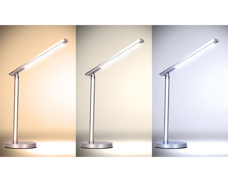 Moderní stolní LED lampička v elegantní stříbrné barvě je ideální volbou pro pracovní stoly i domácí kanceláře. Díky třem nastavitelným teplotám světla (3000K, 4500K, 6000K) a třístupňovému stmívání si snadno přizpůsobíte osvětlení podle aktuální potřeby – od relaxace po soustředěnou práci.