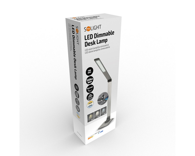 Solight LED stolní lampička stmívatelná, 11W, změna chromatičnosti, broušený hliník, stříbrná