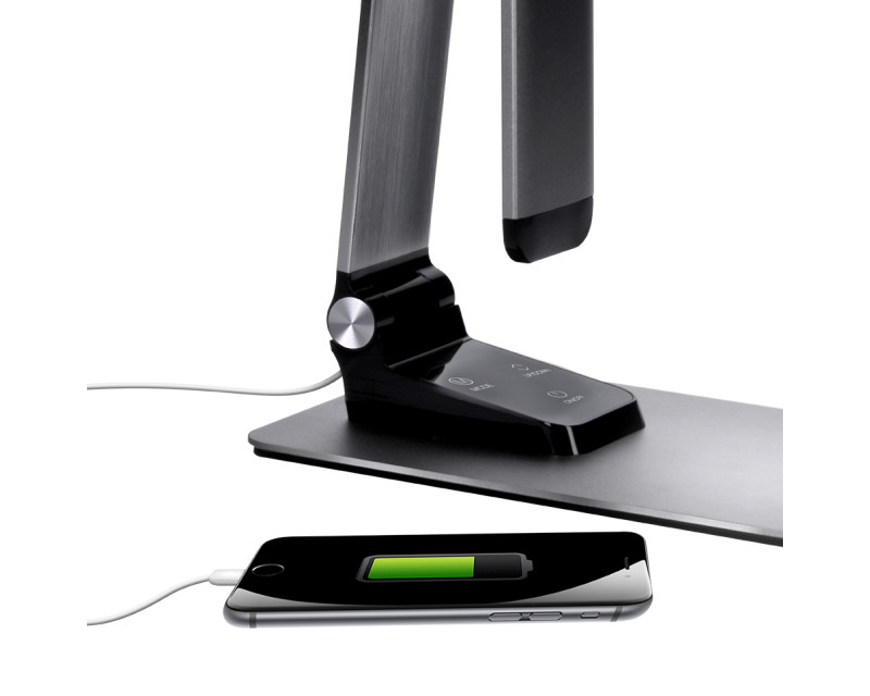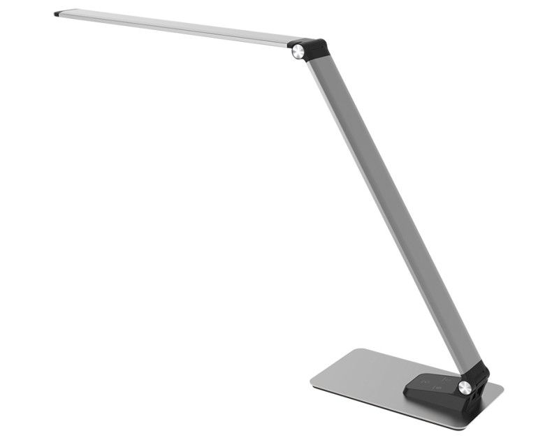 Lampička s příkonem 11 W poskytuje světelný tok až 550 lm a široký úhel svícení 120°. Nabízí také USB výstup (5V, 1000mA) pro nabíjení mobilních zařízení – kabel je součástí balení. Robustní konstrukce z hliníku se stěnou o síle 6 mm dodává lampičce stabilitu a dlouhou životnost. Rozměry: 393 x 120 x 450 mm, napájení AC 100–240V, výstup DC 12V, délka kabelu 140 cm. Barva: stříbrná. Energetická třída G.