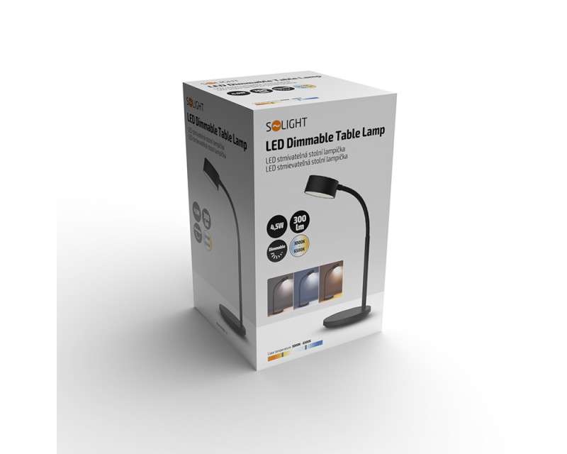 Solight LED stolní lampička, 4,5W, 300lm, 3CCT, černá, podstavec