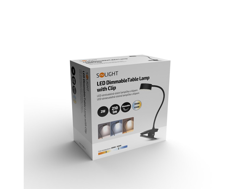 Solight LED stolní nabíjecí lampička, 2W, 210lm, 3CCT, černá, clip