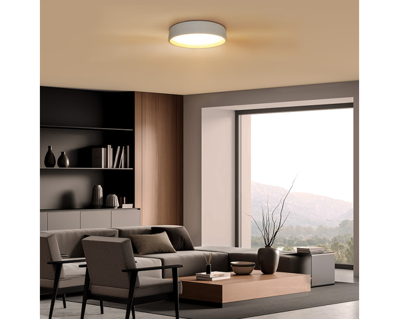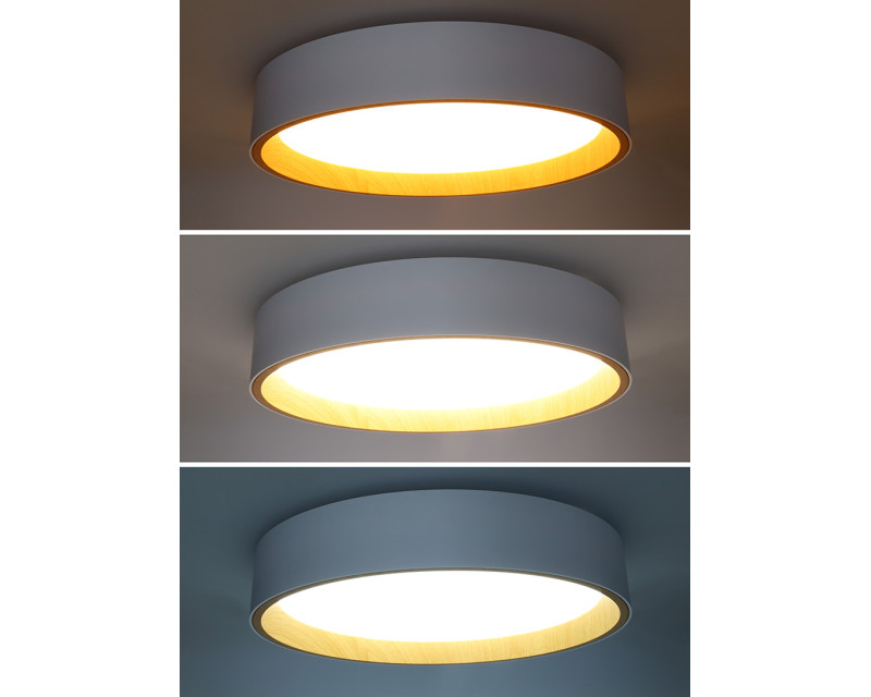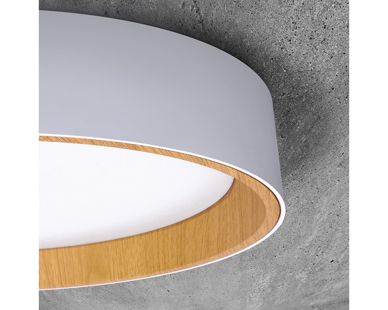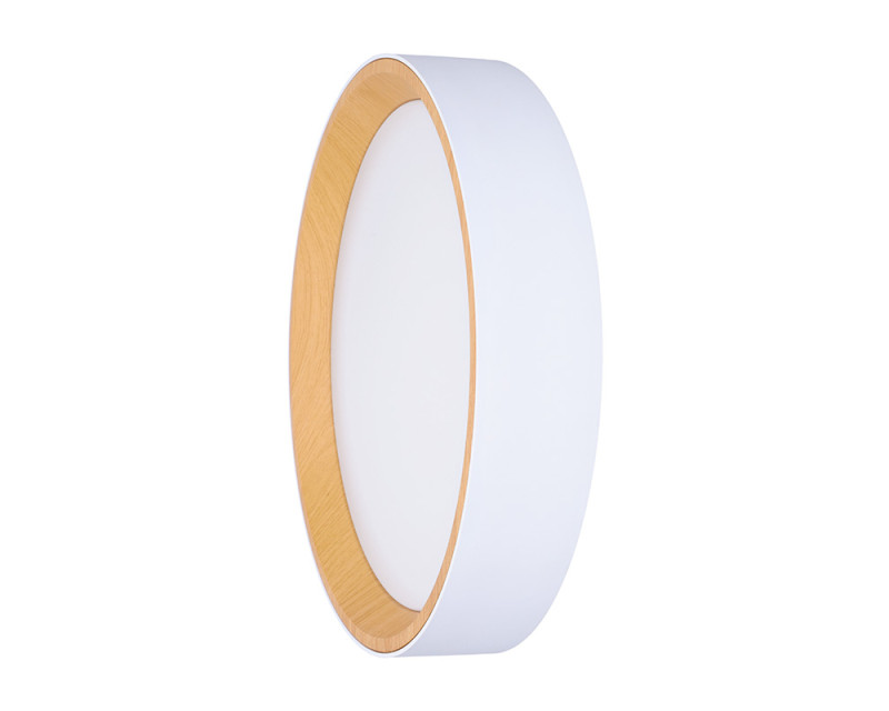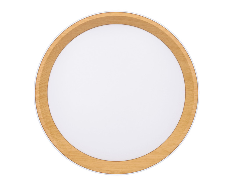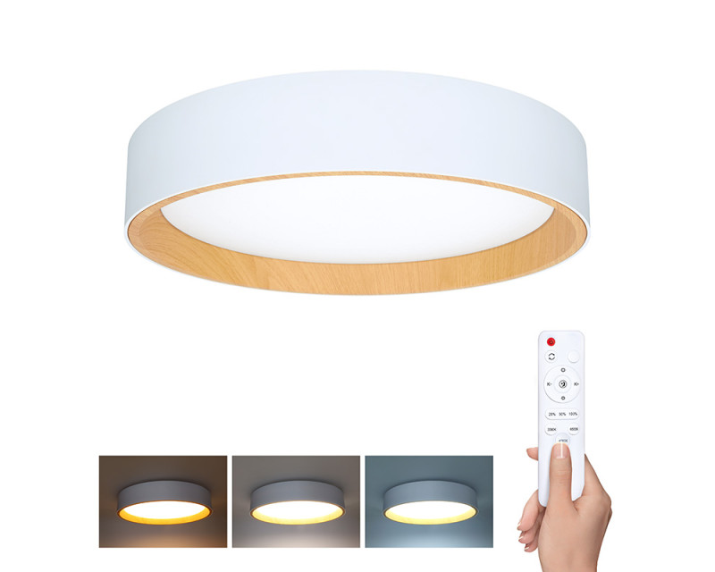 Design v elegantní bílé barvě s imitací dřevěného dekoru vnitřního prstence dodává interiéru příjemný a přírodní vzhled. Díky dálkovému ovladači můžete snadno regulovat intenzitu světla, teplotu (3000K - 6500K) i výběr přednastavených režimů osvětlení, což umožňuje přizpůsobení atmosféry dle vašich potřeb.