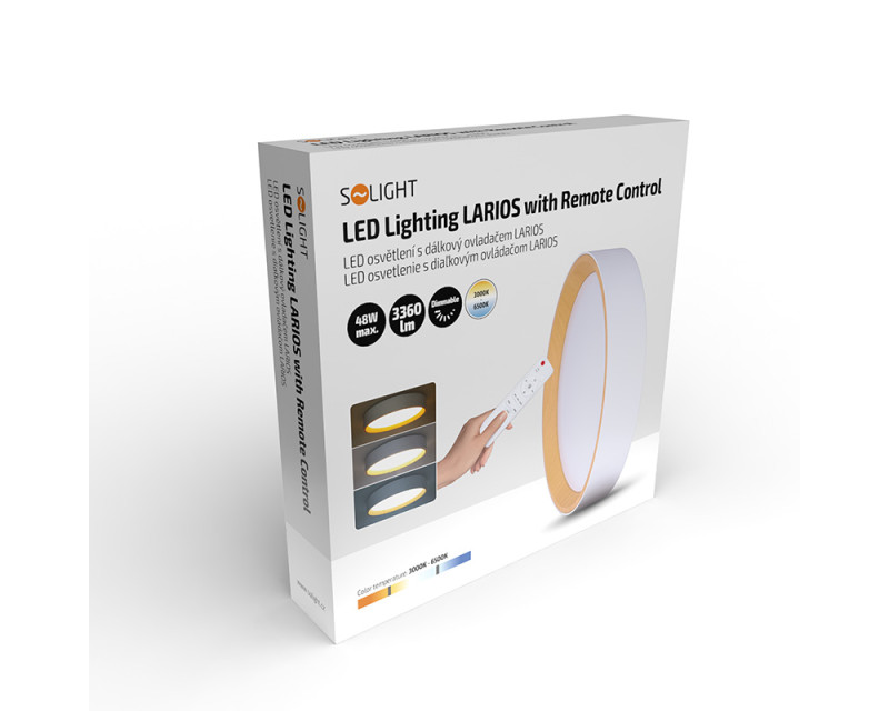 Solight LED osvětlení s dálkovým ovladačem Larios White, 48W, 3360lm, 39cm, změna chromatičnosti, stmívatelné