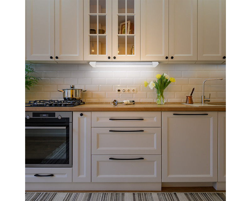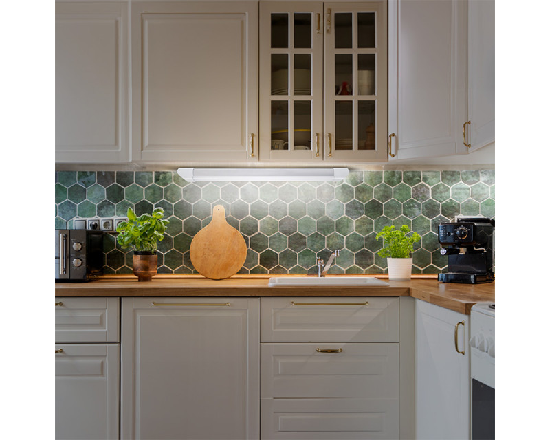 LED lineární svítidlo s příkonem 10W a světelným tokem 850 lm nabízí neutrální bílé světlo (4100K) a 3-stupňové dotykové stmívání. Díky dotykovému vypínači a elegantnímu hliníkovému tělu ve stříbrné barvě je ideální pro osvětlení kuchyňských linek, technických prostor i pracovních desek. Svítidlo má úhel svícení 180°, CRI >80 a životnost 30 000 hodin. Napájení je řešeno přes svorkovnici uvnitř svítidla, napětí 220–240V. Rozměry: 624 x 32 x 45 mm. Krytí IP20. Energetická třída F. Dodáváno v krabici.