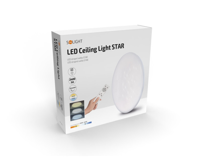 Solight LED stropní světlo Star, kulaté, 24W, 2400lm, dálkové ovládání, 37cm