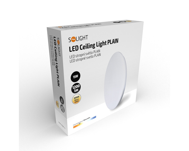 Solight LED stropní světlo Plain, 15W, 1200lm, 3000K, kulaté, 26cm