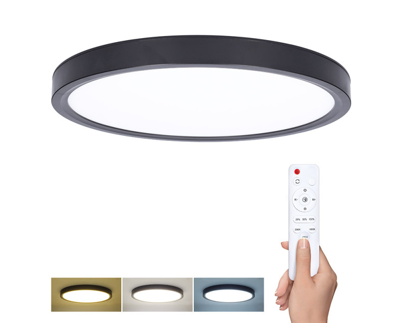 Solight LED osvětlení s dálkovým ovladačem Estela Black, 36W, 2700lm, 30cm, změna chromatičnosti, stmívatelné