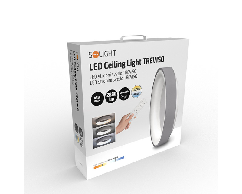 Solight LED stropní světlo kulaté Treviso, 48W, 2880lm, stmívatelné, dálkové ovládání, šedá