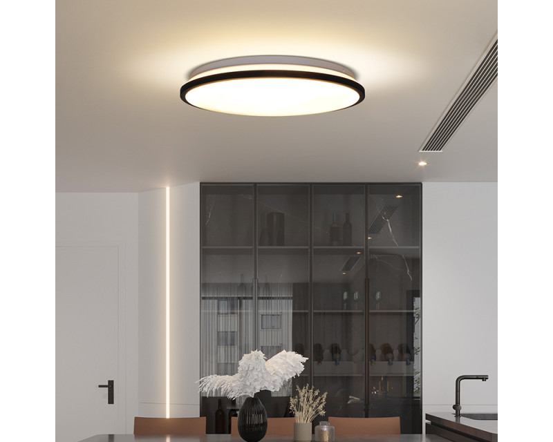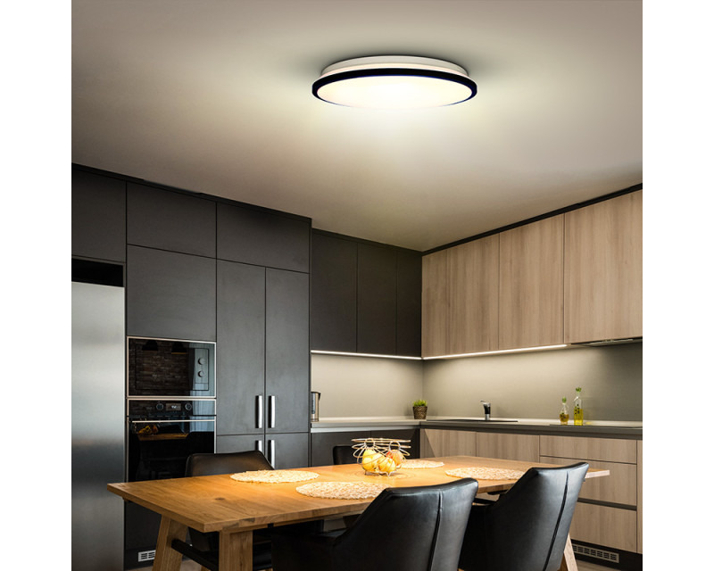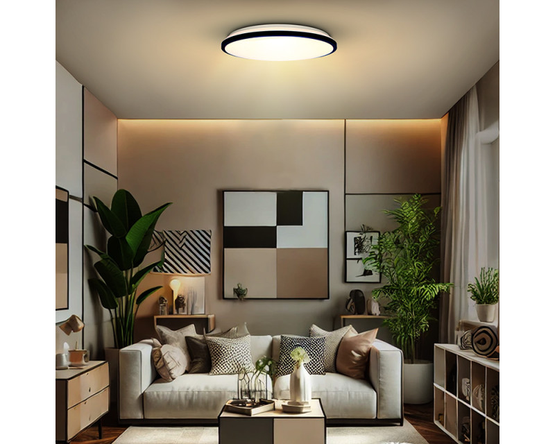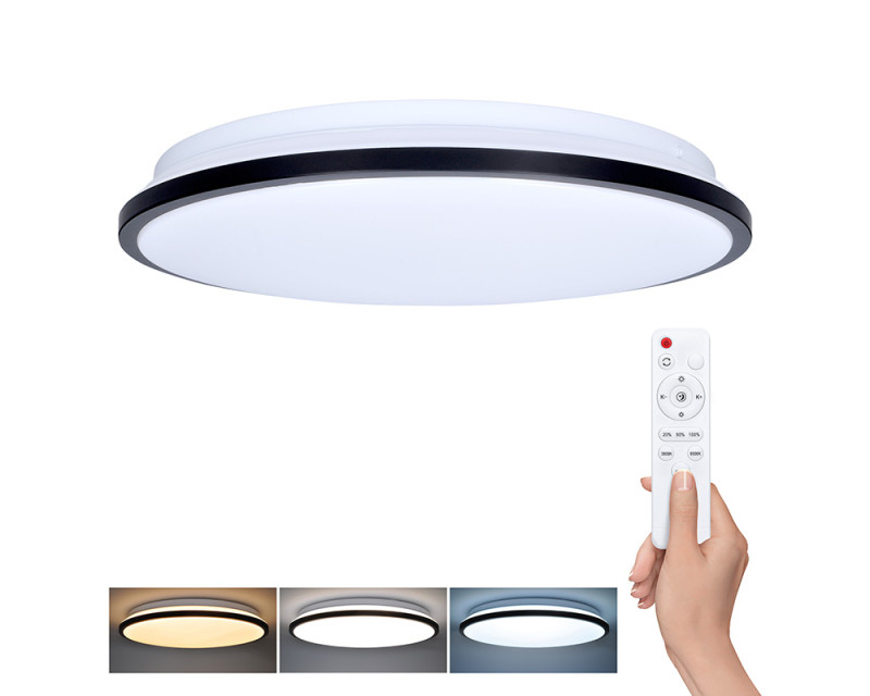 LED stmívatelné svítidlo Jamil v černém provedení spojuje elegantní design s chytrými funkcemi. Dálkovým ovladačem lze snadno měnit intenzitu světla a teplotu chromatičnosti od teplé (3000K) přes neutrální (4000K) až po studenou bílou (6500K). Svítidlo dosahuje výkonu 48 W a světelného toku až 3360 lm (při 4000K), což jej činí ideální volbou pro moderní interiéry.