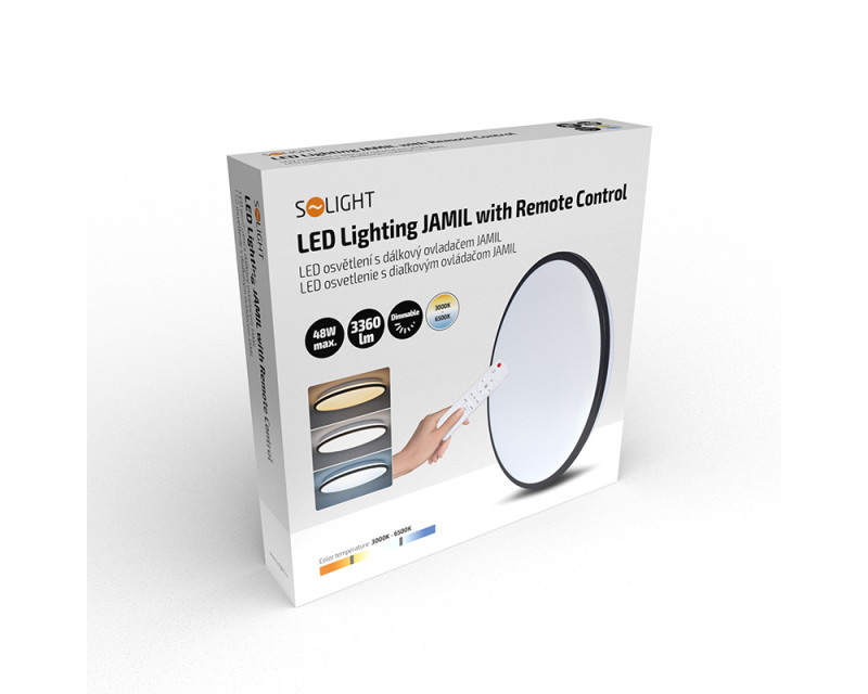 Solight LED osvětlení s dálkovým ovladačem Jamil, 48W, 3360lm, 40cm, změna chromatičnosti, stmívatelné