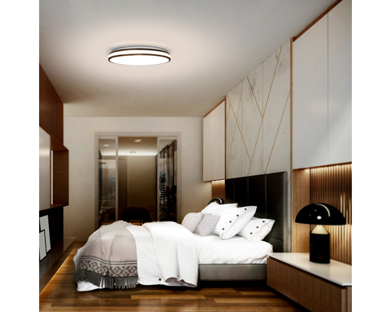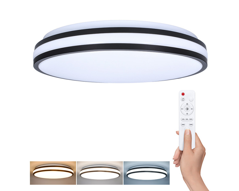 Moderní LED svítidlo Laskos v černé barvě přináší plynule nastavitelné osvětlení s možností dálkového ovládání. Nabízí změnu teploty světla (3000K–6500K) i intenzity jasu. S příkonem 48 W a světelným tokem až 3360 lm (při 4000K) osvětlí prostor rovnoměrně a efektivně díky úhlu 120°.