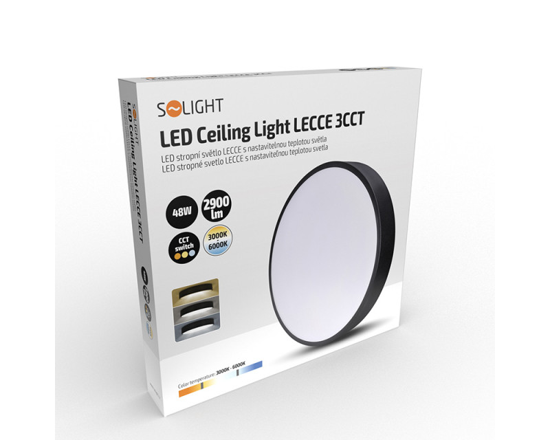 Solight LED stropní osvětlení LECCE, 3CCT, 48W, 2900lm, 40cm, 3000/4000/6000K, černá