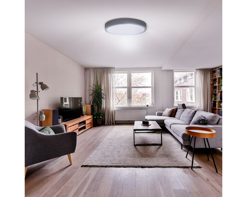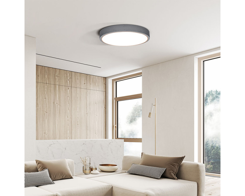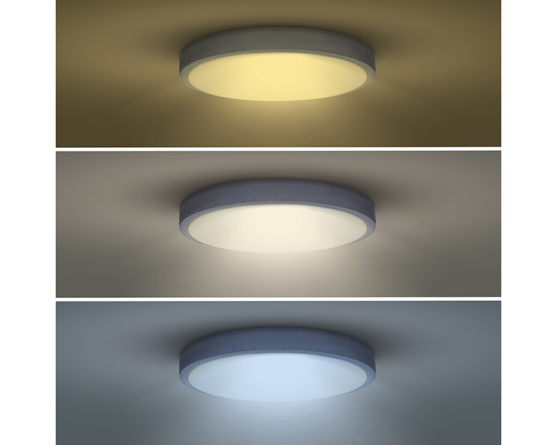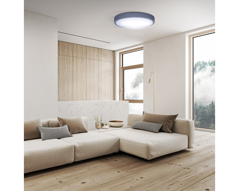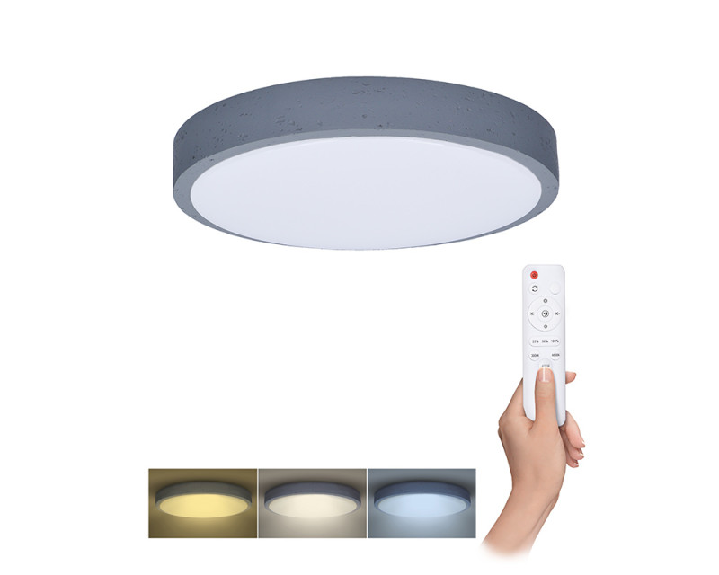 LED stmívatelné svítidlo Grey s povrchovou úpravou v dekoru šedého betonu přináší netradiční vzhled a chytré funkce do každého moderního interiéru. Dálkové ovládání umožňuje nastavení teploty světla v rozsahu 3000K až 6500K, plynulé stmívání a volbu z několika světelných režimů. Svítidlo má maximální příkon 48 W a světelný tok až 3360 lm (pro 4000K), čímž zajišťuje dostatek světla i pro větší místnosti.