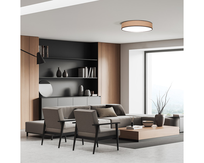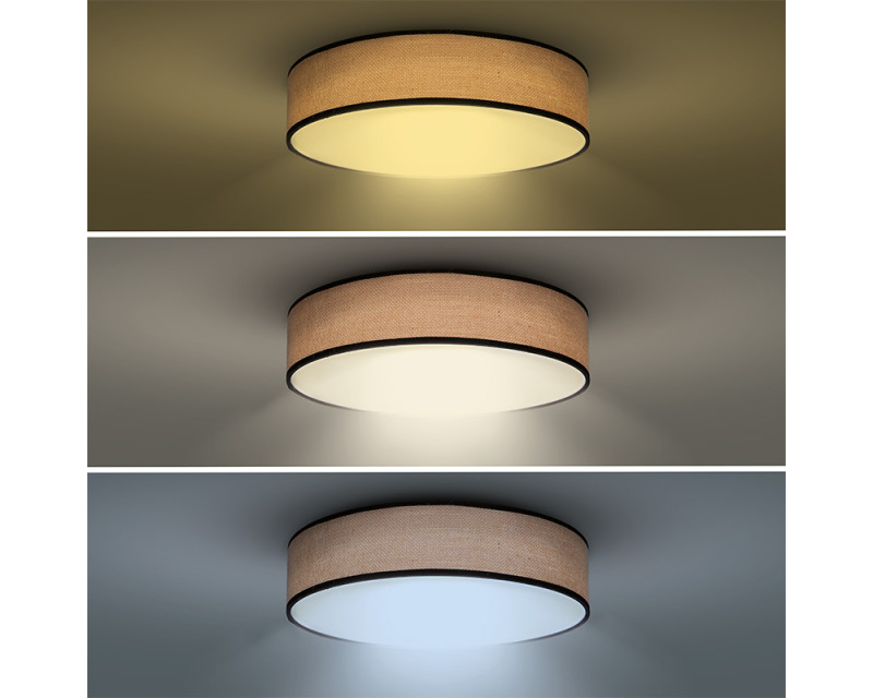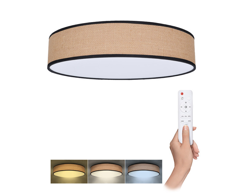 Designové stmívatelné LED svítidlo Brownie přináší do interiéru jedinečný přírodní vzhled díky dekoru režné juty. Pomocí dálkového ovladače můžete pohodlně nastavovat jas, měnit teplotu světla od teplé po studenou bílou (3000K–6500K) a vybírat z přednastavených světelných režimů. Maximální příkon 48W a světelný tok až 3360 lm (pro 4000K) poskytují dostatečné osvětlení i pro větší prostory.
