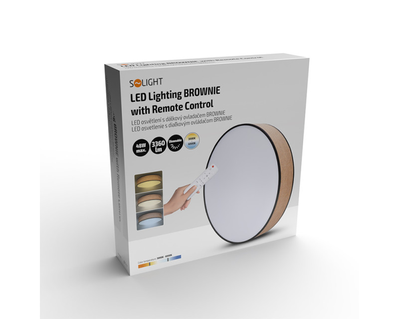 Solight LED osvětlení s dálkovým ovladačem Brownie, 48W, 3360lm, 40cm, změna chromatičnosti, stmívatelné