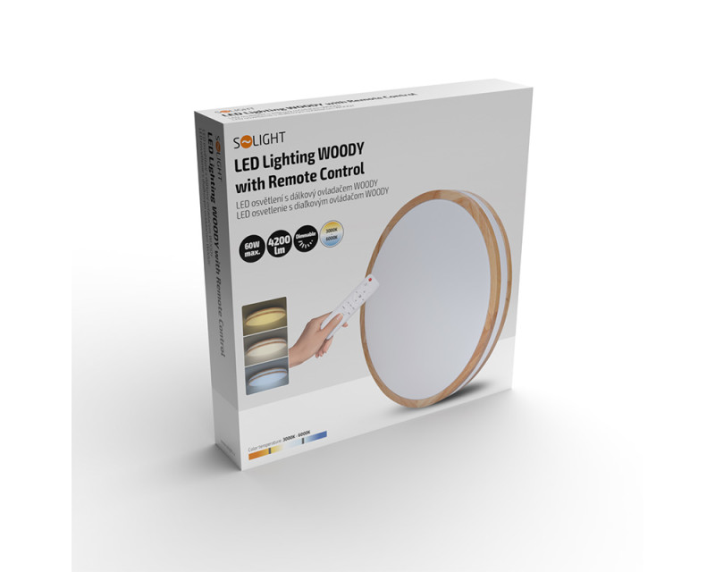 Solight LED osvětlení s dálkovým ovladačem Woody, 60W, 4200lm, 50cm, změna chromatičnosti, stmívatelné