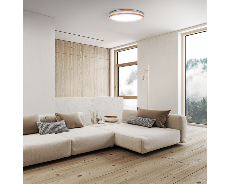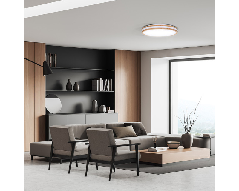 Výkonnější varianta osvětlení Woody s příkonem 60 W přináší ještě vyšší světelný tok až 4200 lm při zachování přirozeného dubového designu. Nastavení chromatičnosti (3000K–6500K) i intenzity světla je snadno dostupné díky dálkovému ovládání. Svítidlo je ideální pro větší místnosti, kde je zapotřebí silné, ale přitom měkké a přizpůsobitelné světlo.