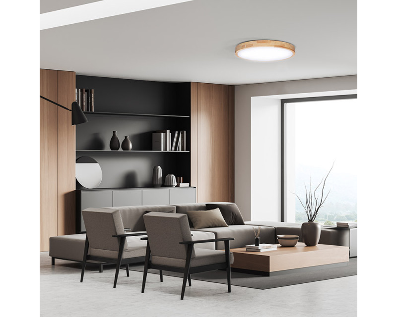 Svítidlo je vybaveno kvalitní LED technologií s životností 20 000 hodin, má šířku 505 × 90 mm a úhel svícení 120°. Kombinace přírodního dřeva, kovové základny a PMMA difuzoru tvoří elegantní a pevné svítidlo s vynikajícím podáním barev (Ra >80). Je ideální pro velké obytné prostory, kanceláře či reprezentační interiéry.