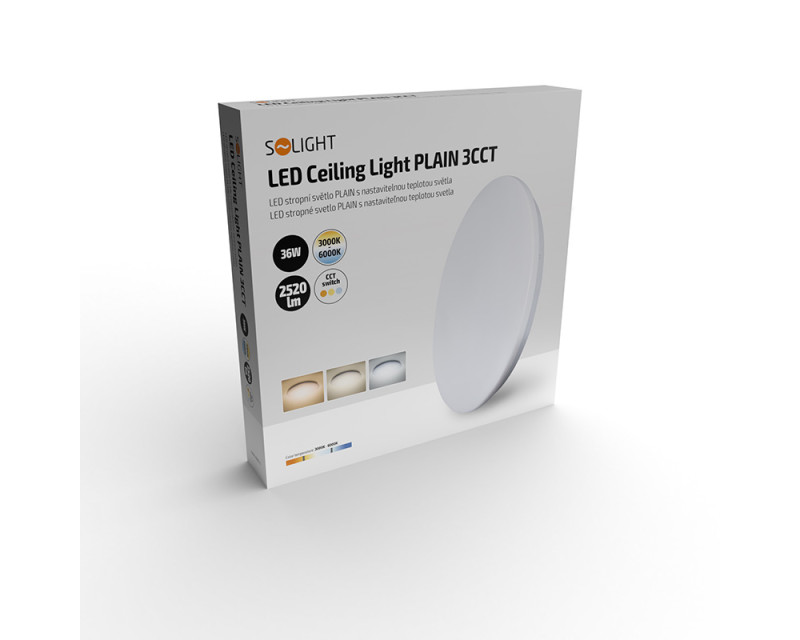 Solight LED stropní světlo Plain, 3CCT, 36W, 2520lm, 3000K, 4000K, 6000K, kulaté, 45cm