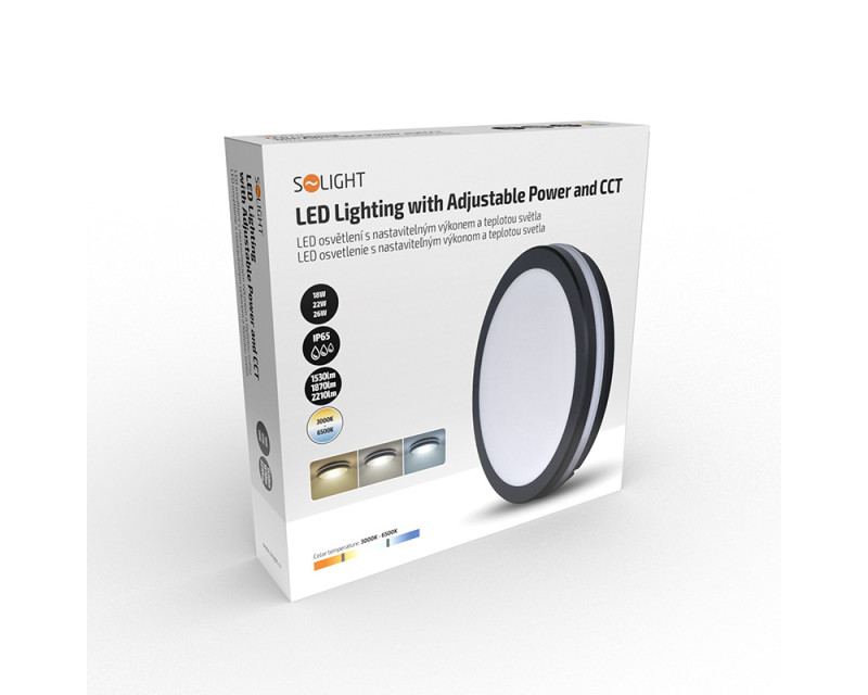 Solight LED osvětlení Adrano s ochranou proti vlhkosti, IP54, 18W, 1530lm, 3CCT, 28cm