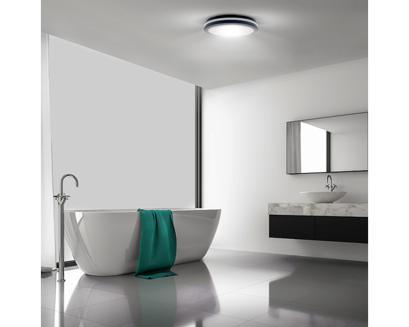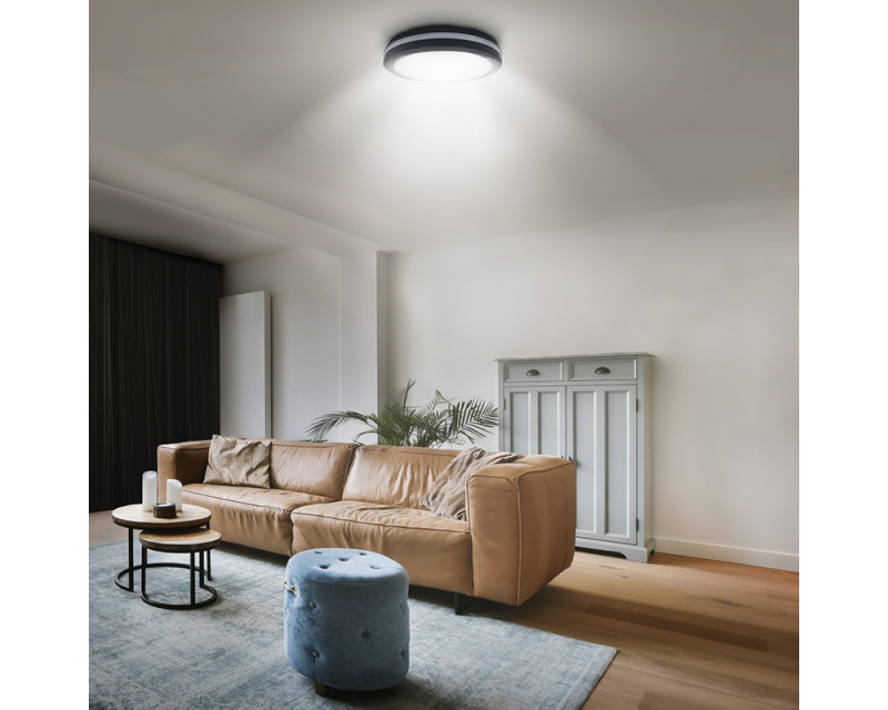 Svítidlo s krytím IP65 je odolné vůči vlhkosti a prachu, a proto vhodné jak do koupelen, chodeb či technických místností, tak i pro venkovní instalaci. Světelný tok dosahuje až 2210 lm, životnost LED je 25 000 hodin a index podání barev Ra >80 zajistí věrné zobrazení barev. Kulatý tvar (⌀300 mm) a výška 50 mm umožňují snadnou montáž na strop i stěnu. Ideální volba pro ty, kdo hledají kombinaci výkonu, variability a odolnosti.