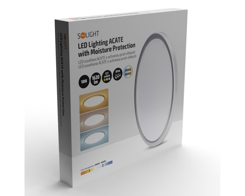 Solight LED osvětlení Acate s ochranou proti vlhkosti, IP54, 18W, 1620lm, 3CCT, 22cm, stříbrná