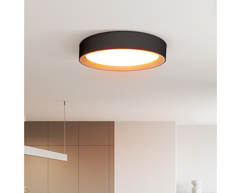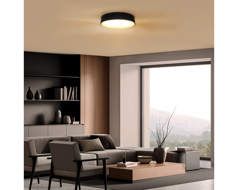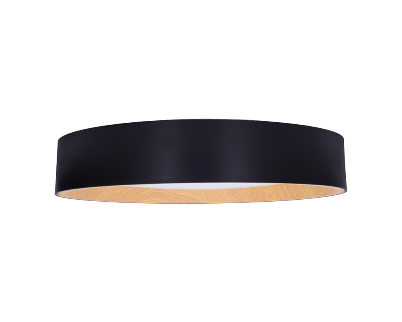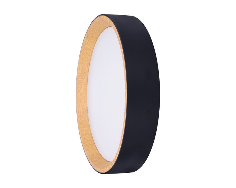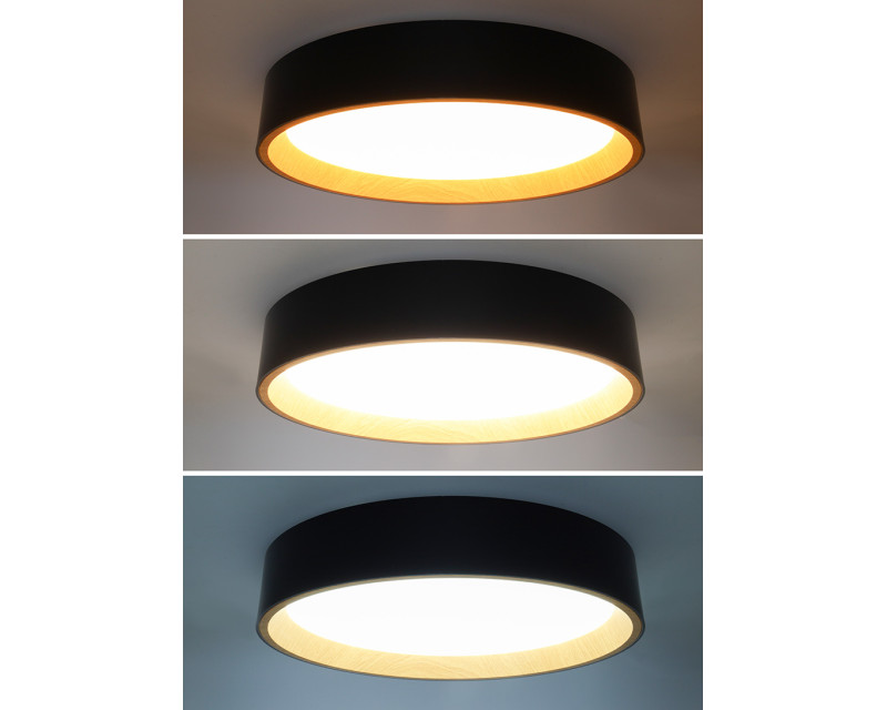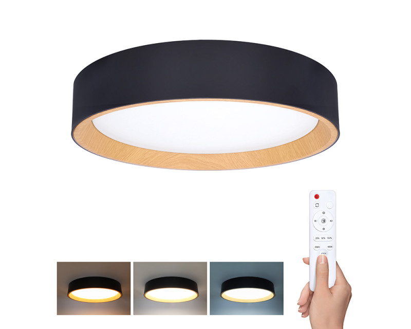 Design v elegantní černé barvě s imitací dřevěného dekoru vnitřního prstence dodává interiéru příjemný a přírodní vzhled. Díky dálkovému ovladači můžete snadno regulovat intenzitu světla, teplotu (3000K - 6500K) i výběr přednastavených režimů osvětlení, což umožňuje přizpůsobení atmosféry dle vašich potřeb.