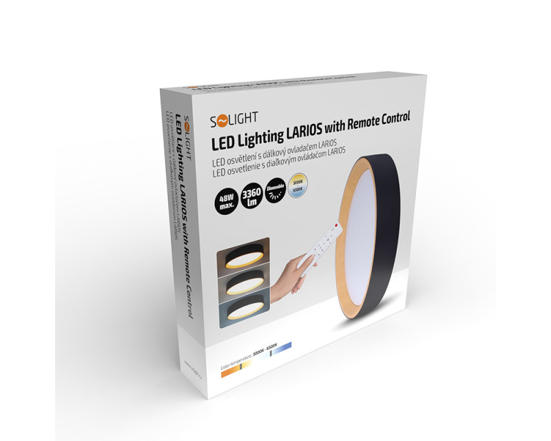 Solight LED osvětlení s dálkovým ovladačem Larios Black, 48W, 3360lm, 39cm, změna chromatičnosti, stmívatelné
