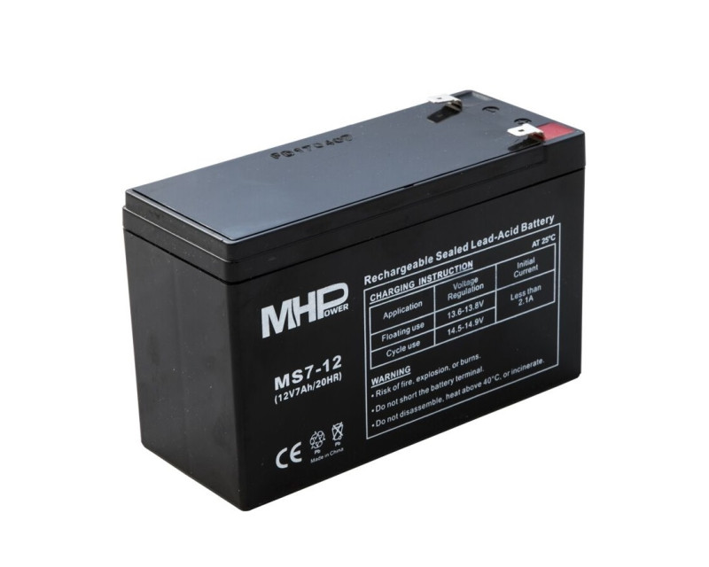 MHPower MS7-12 olověný akumulátor AGM 12V/7Ah, Faston F2 - 6,3mm