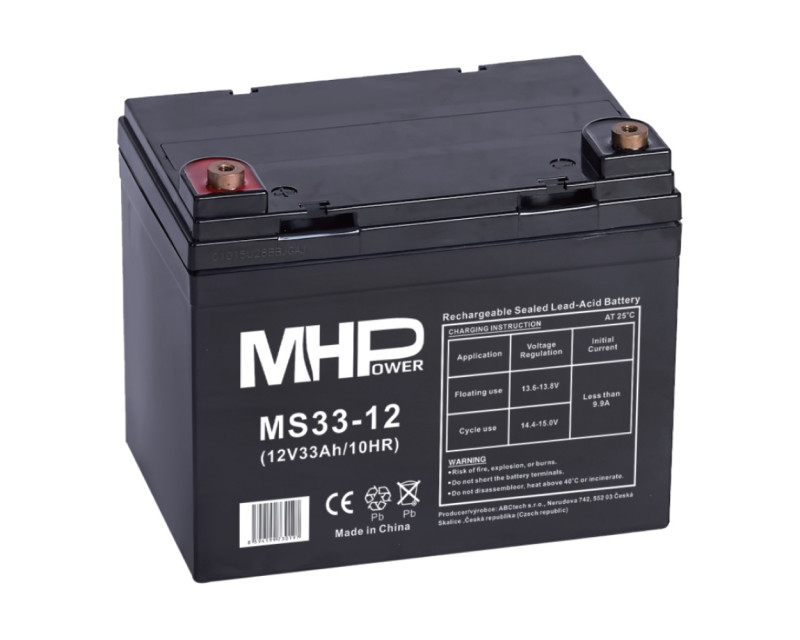 MHPower MS33-12 olověný akumulátor AGM 12V/33Ah, Terminál L2 - M6