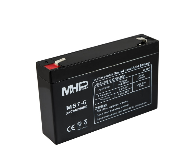 MHPower MS7-6 olověný akumulátor AGM 6V/7Ah, Faston F2 - 6,3mm