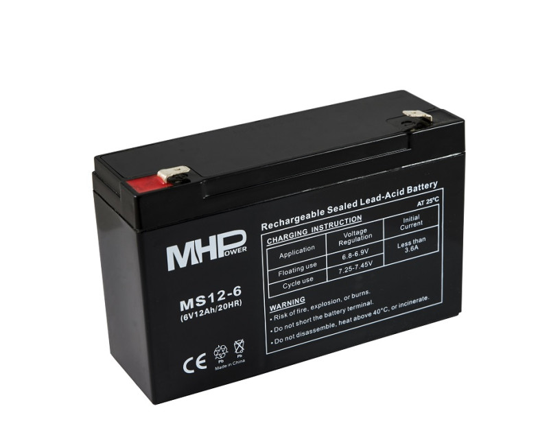 MHPower MS12-6 olověný akumulátor AGM 6V/12Ah, Faston F2 - 6,3mm