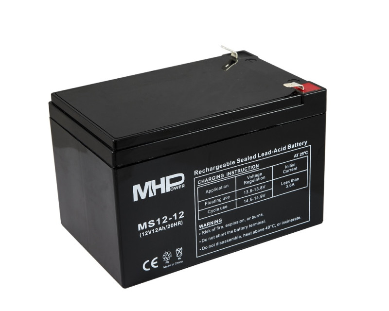 MHPower MS12-12 olověný akumulátor AGM 12V/12Ah, Faston F2 - 6,3mm