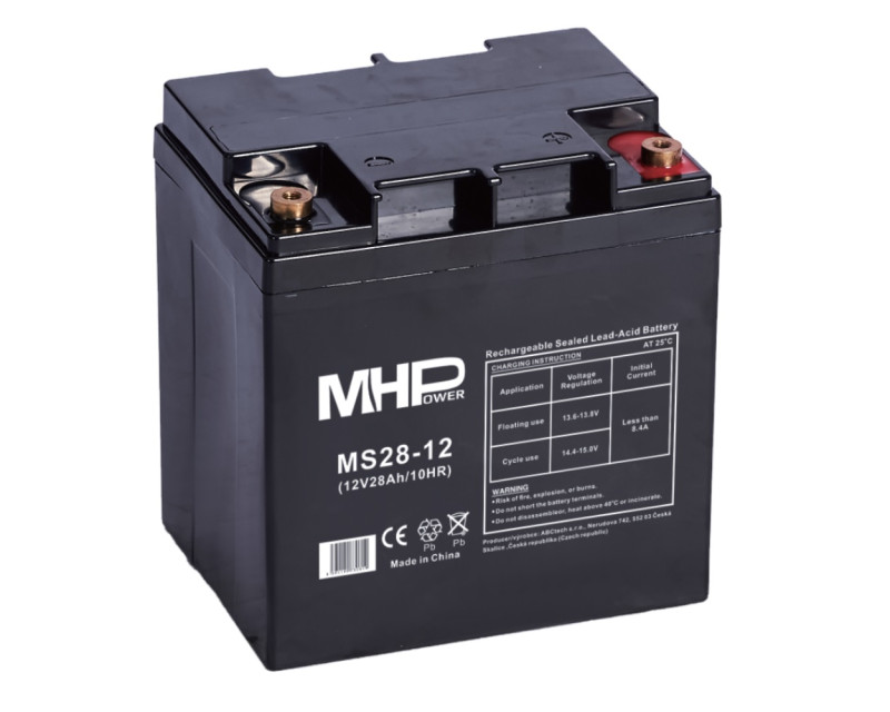 MHPower MS28-12 olověný akumulátor AGM 12V/28Ah, Terminál T1 - M6