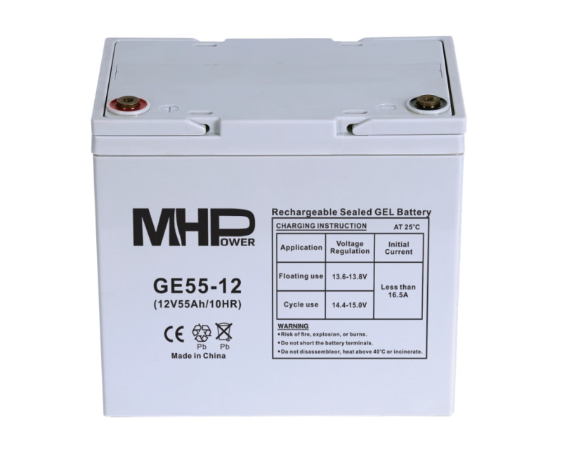 MHPower GE55-12 Gelový akumulátor 12V/55Ah, Terminál T1 - M6, Deep Cycle