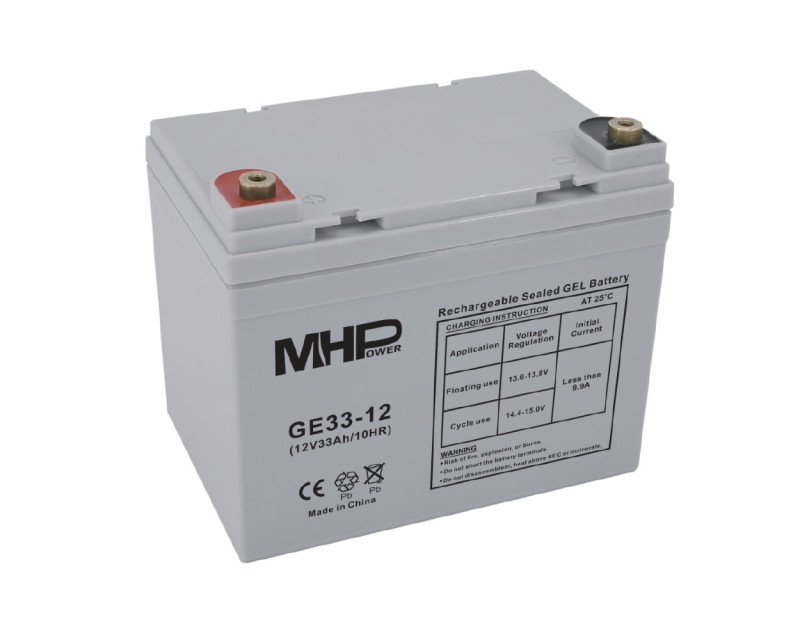 MHPower GE33-12 Gelový akumulátor 12V/33Ah, Terminál T2 - M6, Deep Cycle