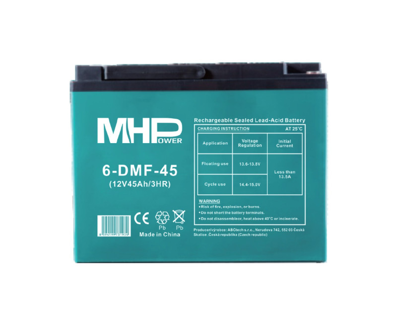 Trakční gelová baterie MHPower 6-DMF-45 je spolehlivým zdrojem energie navrženým pro náročné aplikace, které vyžadují hluboké cykly nabíjení a vybíjení. S kapacitou 45Ah a napětím 12V je ideální pro napájení elektrických vozidel, golfových vozíků, solárních systémů, nebo jako záložní zdroj energie. Díky gelové technologii je odolná vůči vibracím, nevyžaduje údržbu a má delší životnost než tradiční olověné baterie. Baterie je optimalizována pro hluboké cykly (Deep Cycle), což z ní činí ideální volbu pro aplikace s vysokou cyklickou zátěží.