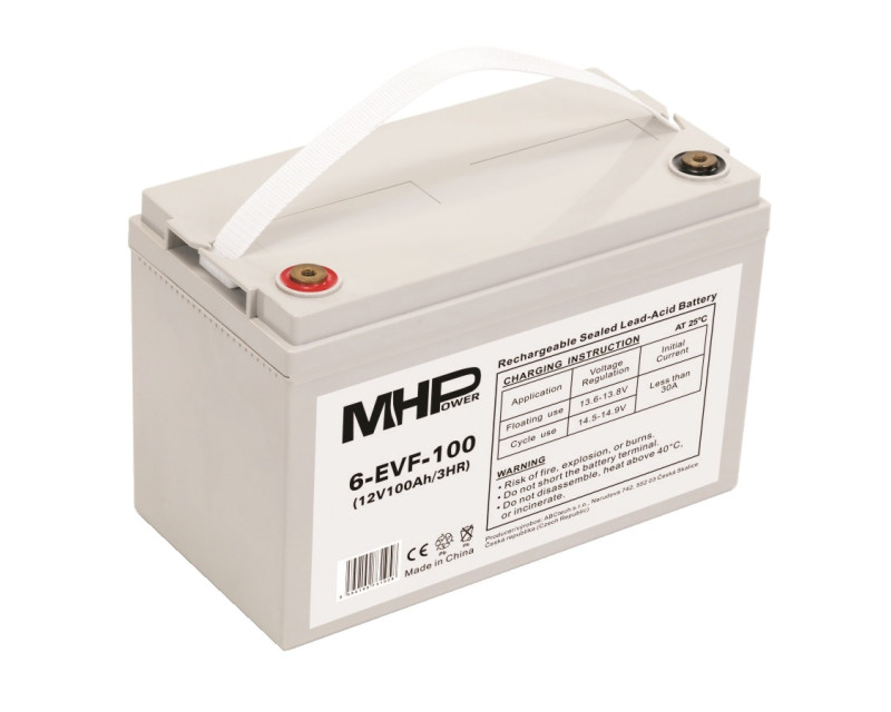 Trakční gelová baterie MHPower 6-EVF-100 je spolehlivým zdrojem energie navrženým pro náročné aplikace, které vyžadují hluboké cykly nabíjení a vybíjení. S kapacitou 100Ah a napětím 12V je ideální pro napájení elektrických vozidel, golfových vozíků, solárních systémů, nebo jako záložní zdroj energie. Díky gelové technologii je odolná vůči vibracím, nevyžaduje údržbu a má delší životnost než tradiční olověné baterie. Baterie je optimalizována pro hluboké cykly (Deep Cycle), což z ní činí ideální volbu pro aplikace s vysokou cyklickou zátěží.