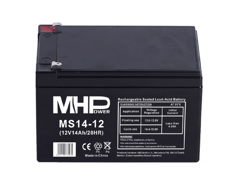 MHPower MS14-12 olověný akumulátor AGM 12V/14Ah, Faston F2 - 6,3mm