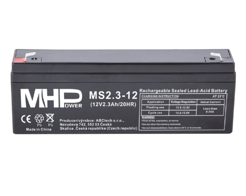 MHPower MS2.3-12 olověný akumulátor AGM 12V/2.3Ah, Faston F1 - 4,8 mm