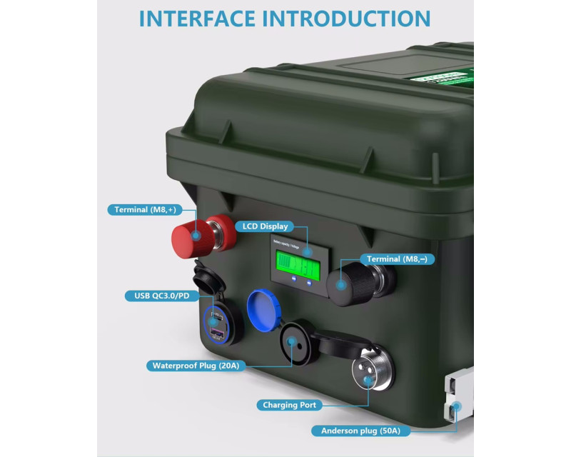 Baterii lze nabít více než 6 000krát a poskytuje životnost až 10 let. Má třídu ochrany proti prachu a vlhkosti IP64, díky čemuž je baterie vhodná pro použití v různých podmínkách. Vhodné pro rybářské loděa jejich elektrické pohony. Díky mnoha konektorům lze zapojit současně jak motor tak echolot, díky čemuž ušetříte místo na lodi.