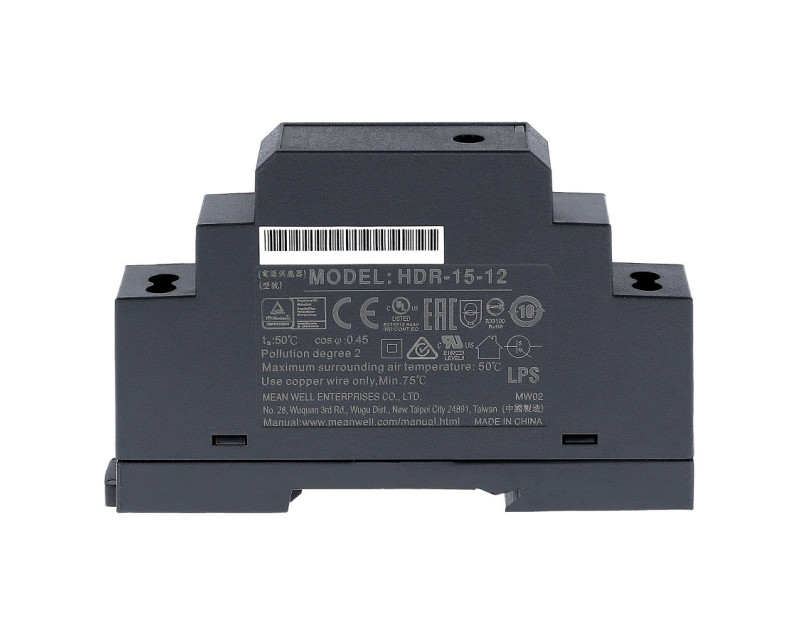 Všechny zdroje série HDR jsou vyráběny v jističovém provedení – jsou vhodné do mělkých skříní např. v domovních elektroinstalacích. Kvalitní celoplastové tělo splňuje normu výrobků třídy II. (s dvojitou izolaci bez zemnící svorky). Izolační pevnost 3 kV zajišťuje vysokou míru bezpečnosti. Ve zdroji jsou osazeny pouze spolehlivé součástky s odolností vůči vysokým teplotám, například japonské kondenzátory s životností přes 10 000 hodin při 105 °C.