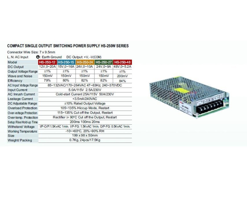 Carspa HS-250-24 průmyslový zdroj spínaný 24V 250W