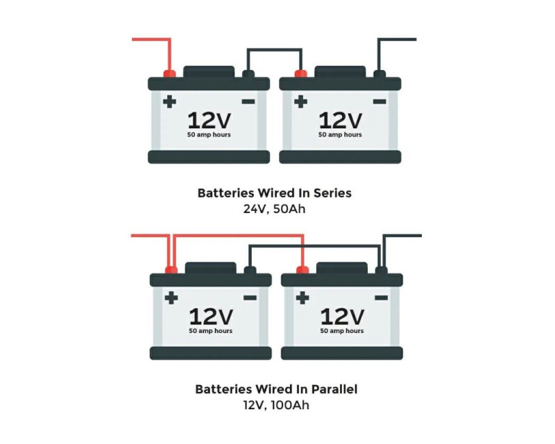 Propojovací kabely - 1x černý, 1x červený, zakončený očky na obou stranách je ideální k propojování baterií, měničů napětí, atd...se závitem M6. Propojením více baterií můžete zvýšit výstupní napětí (sériové zapojení) nebo celkovou kapacitu (paralelní zapojení).