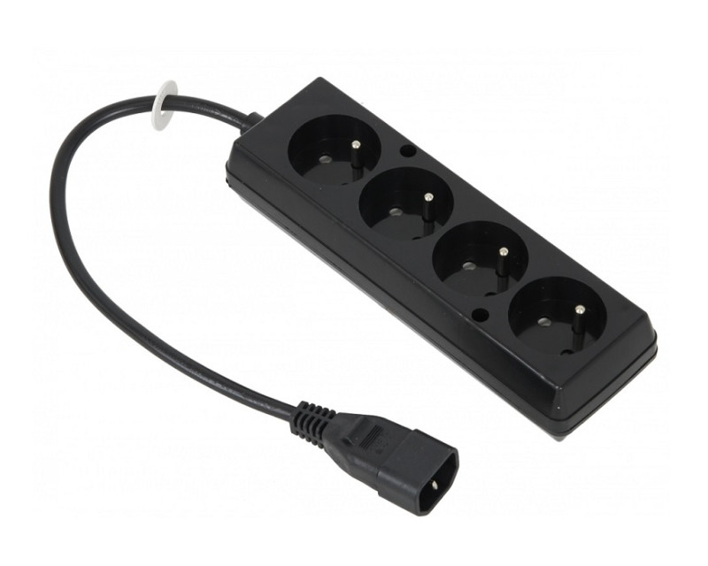 Prodlužovací kabel pro UPS 4 zásuvky (z C14 IEC320 na 4 CEE 7/5 FR, CZ zásuvky) max.10A, délka 30 cm, černý