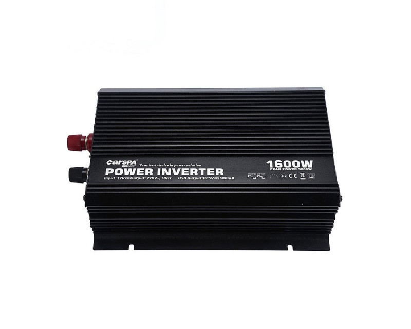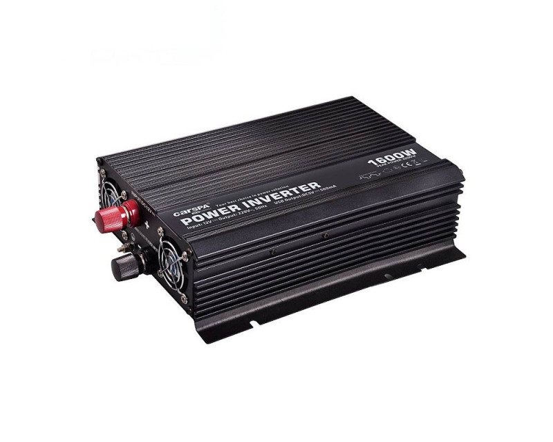 Měniče Carspa jsou jedny z nejpopulárnějších zařízení na trhu. Měnič transformuje stejnosměrný proud z 12V baterie na střídavý proud 230V. Díky tomu můžete používat své oblíbené spotřebiče např. nabíječky kamer, foťáků, mobilních telefonů, tabletů, notebooků a jiných zařízení až do výkonu 1600W i v místech, kde není dostupná rozvodná elektická síť a jde tak o ideální řešení na cesty. Vhodný i pro rychlovarné konvice nebo mikrovlnné trouby do výkonu 1600W.
