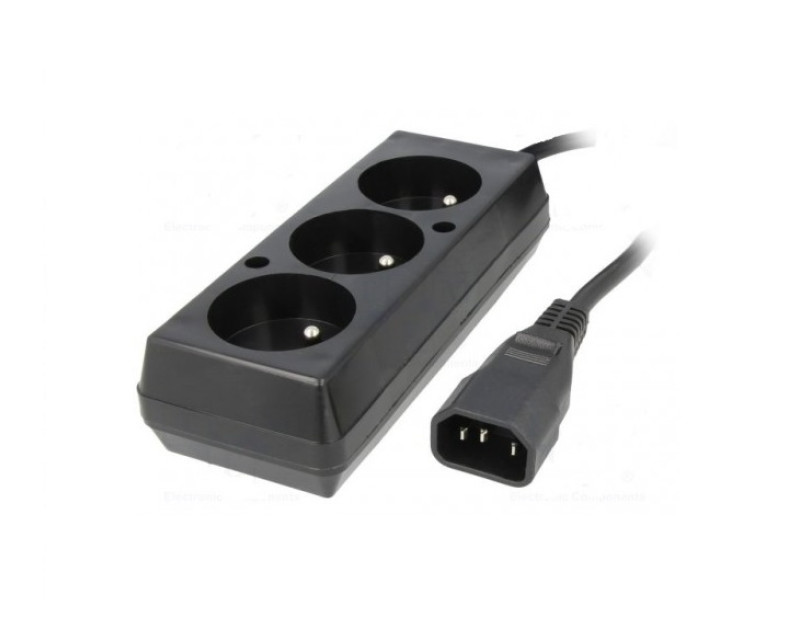 Prodlužovací kabel pro UPS 3 zásuvky (z C14 IEC320 na 3 CEE 7/5 FR, CZ zásuvky) max.10A, délka 30 cm, černý