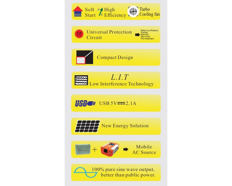 - Čisté sinusové výstupní napětí: čistý výkon pro citlivé zátěže.
