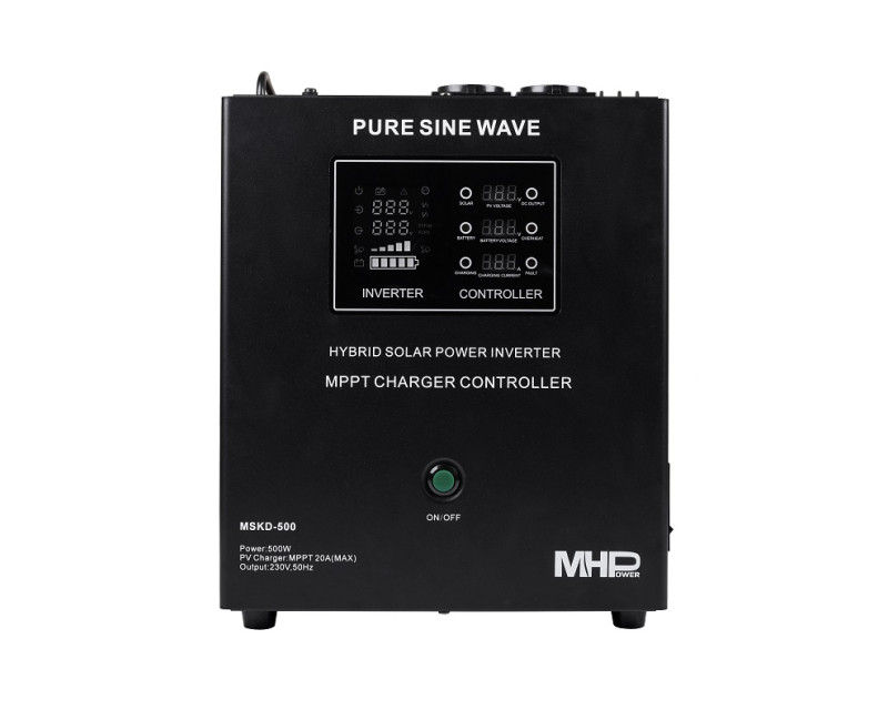 Záložní zdroj MHPower MSKD-500-12, UPS, 500W, čistý sinus, 12V, solární regulátor MPPT